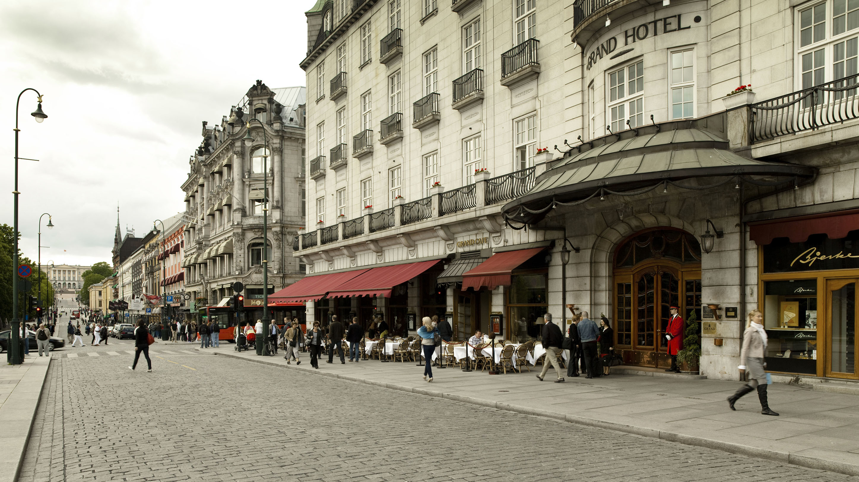 Oslon hienoimpia hotelleita on ehdottomasti eduskuntatalon lähellä sijaitseva Grand Hotel, jonka parvekkeelta Nobel-voittajat joulukuun alussa vilkuttelevat. 1874 avatussa arvokkaassa hotellissa majoittuvat myös monet muut maailmanluokan tähdet ja poliitikot Osloon saapuessaan.