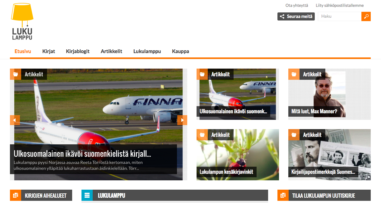 Sauna, salmiakki ja suomalainen kirjasto. Siinäpä tiivistettynä se mitä ulkosuomalainen eniten kaipaa. Lukulamppuun kirjoitin hieman laajemman jutun ulkosuomalaisuudesta ja suomenkielisen kirjallisuuden kaipuusta. Jutun voi käydä lukemassa täällä.