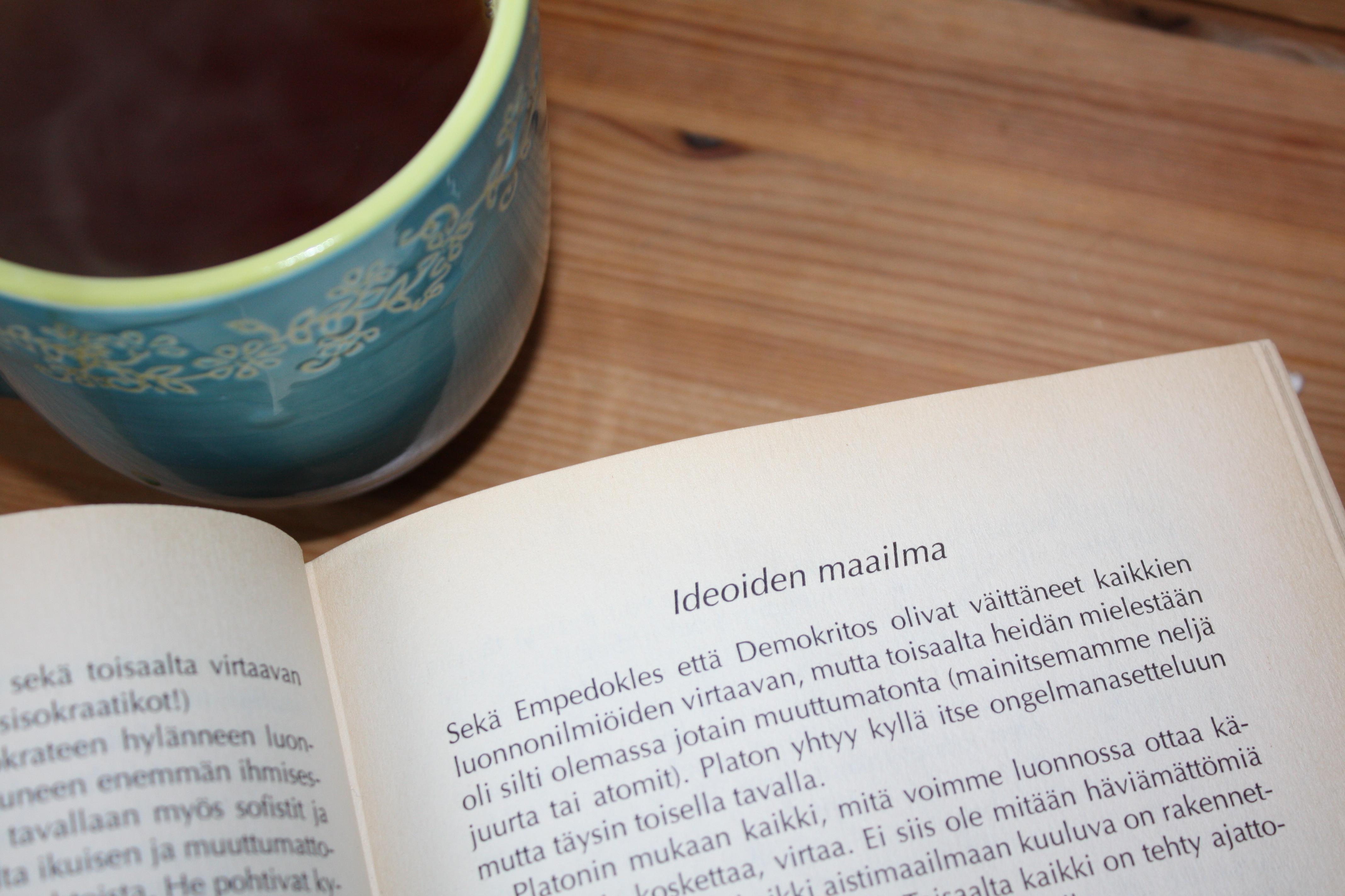 Sofian lisäksi olemme tutustuneet myös luonnonfilosofiehin, Sokrateeseen ja Platoniin. Olemme myös syöneet aamupalaa ja juoneet monta kuppia höyryävää teetä. Matka jakuu!