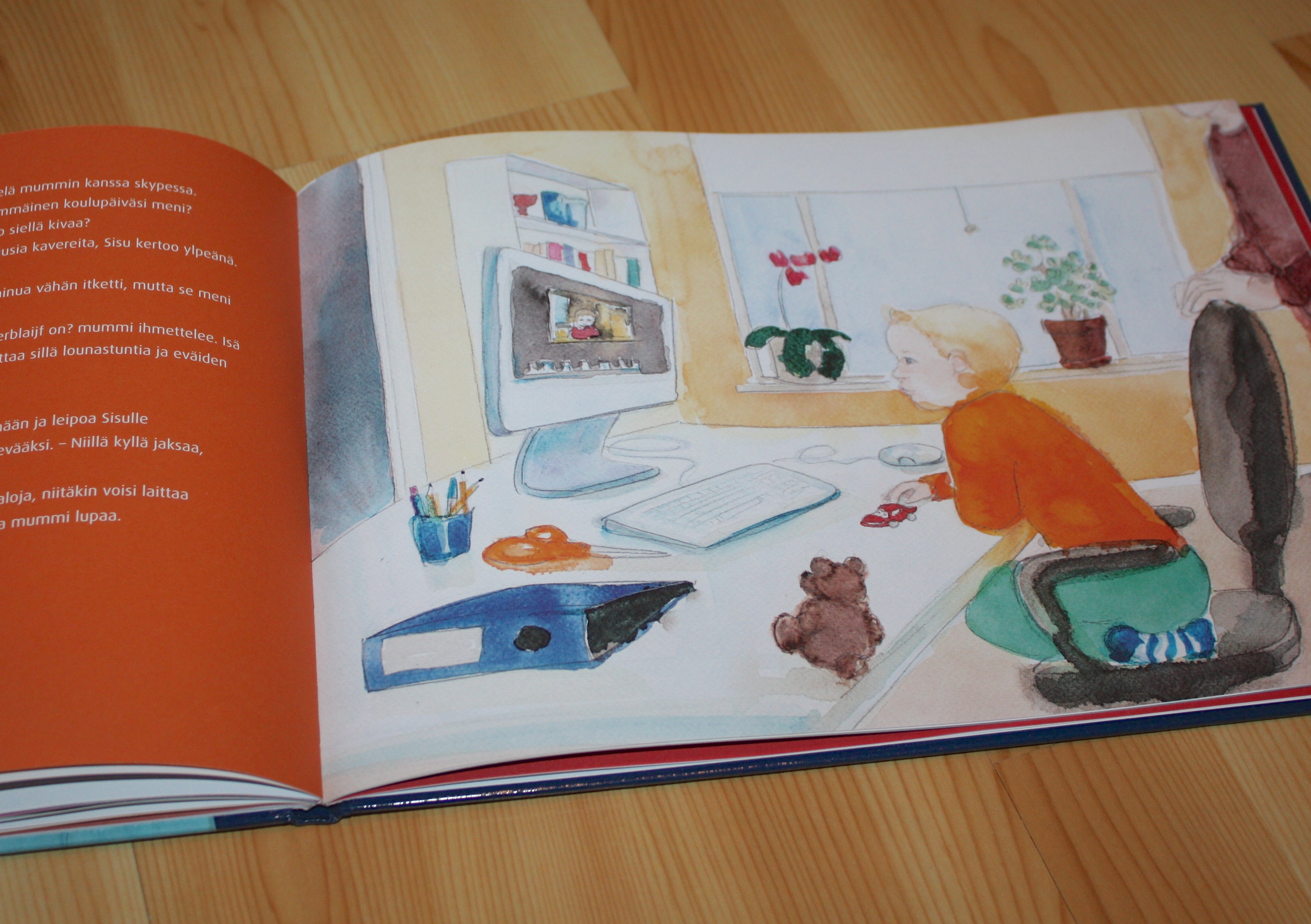 ”Sisu menee kouluun” onkin mainio opaskirja suomalaisille lapsille, jotka aloittavat koulunkäynnin Hollannissa. Koulupäivä ja rutiinit käydään läpi perusteellisesti, jopa niin perusteellisesti, että kirja on ehkä aavistuksen liian pitkä kuvakirjaksi. Toisaalta hyvin pienen lapsen kanssa kirjaa voi tietenkin lukea myös pätkissä. Kirjan pääteema on siis koulun aloitus, mutta tarinassa sivutaan mukavalla tavalla myös ulkosuomalaisuutta. Koulupäivän jälkeen Sisu esimerkiksi juttelee suomalaisen mummin kanssa Skypessa.